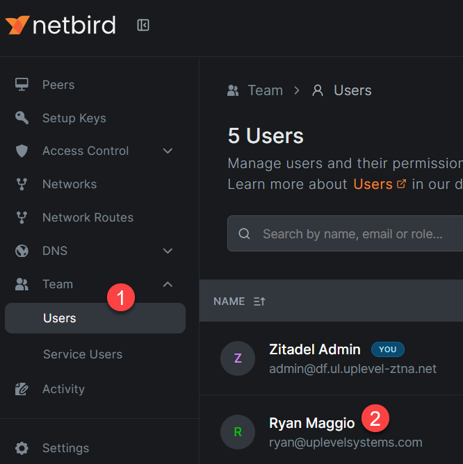 We're actively working to streamline the ZTNA management experience. In the near future, both Zitadel (Identity Provider) and Netbird (ZTNA overlay) will be manageable directly from the Uplevel Portal through API integration, eliminating the need to log into multiple interfaces.